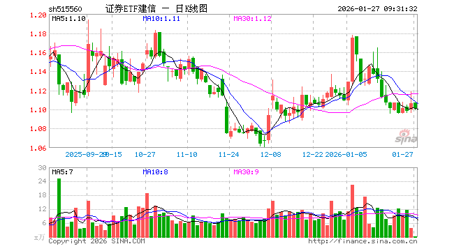 1月27日,证券ETF建信(515560)开盘涨0.09%,报1.107元。证券ETF建信(515560)重仓股方面,东方财富开盘跌0.13%,中信证券涨0.07%,国泰海通涨0.00%,华泰证券跌0.34%,广发证券跌0.22%,招商证券跌0.23%,东方证券跌0.19%,兴业证券跌0.14%,申万宏源涨0.19%,中金公司涨0.03%。